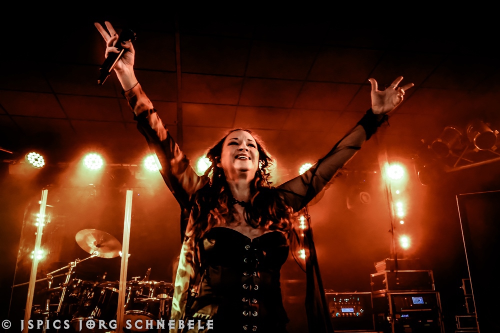 Miracle Flair and FlowerLeaf had the crowd at Kubana in Siegburg perfectly primed for Edenbridge. During the stage changeover, I listened in on the conversations of the fans standing around and couldn’t help but smile. Very few of them realized that the Austrian symphonic power metal band led by singer Sabine Edelsbacher isn’t a “new” band, but was actually founded back in 1998 (!!) and released their debut album in 2000.